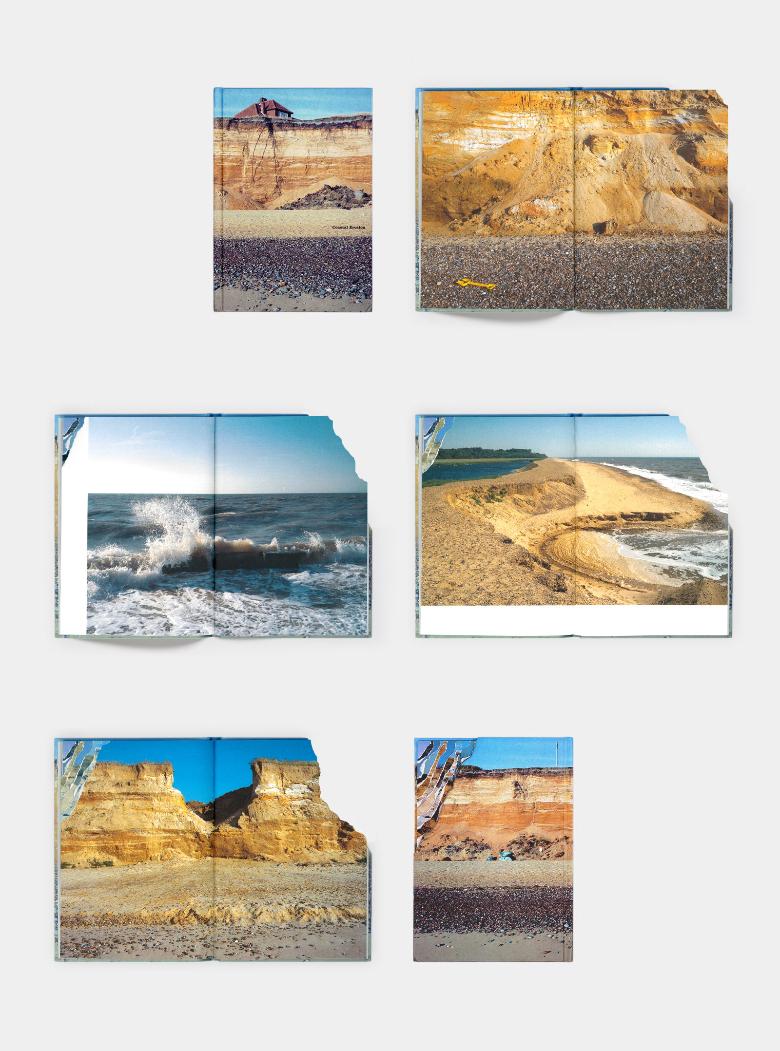 The book is a photographic study bringing home the severity which the UK coastlines is shrinking. The plight of certain coastal regions is underscored by the physical erosion of the books cover and its individual pages.