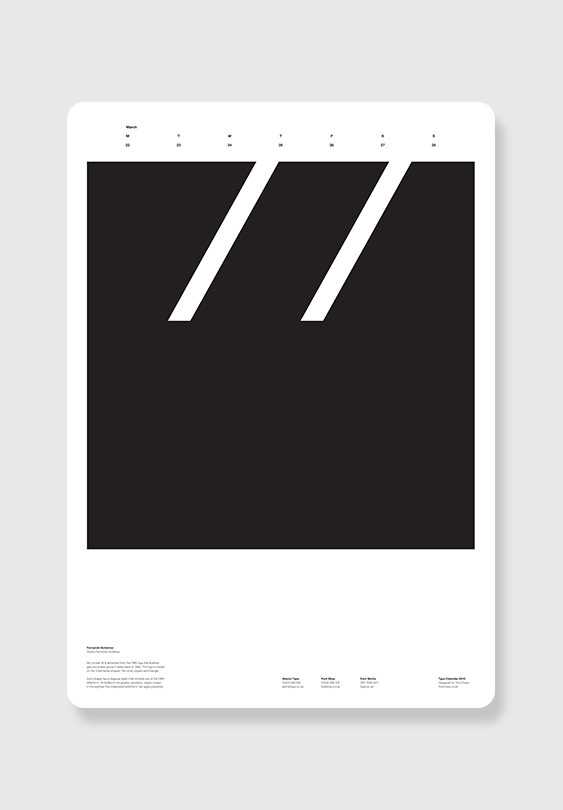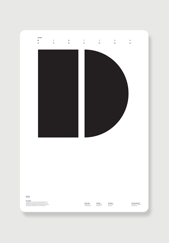 Font Shop, Font Works and Atomic Type combined in a project to celebrate the variety of letterforms throughout printing history. With 26 capital letters and 26 lower case in the English alphabet. How come nobody’s produced a 52-page typographic calendar before?